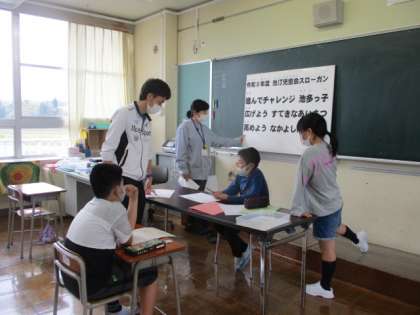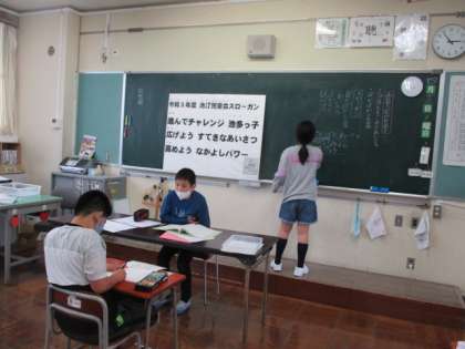 運営委員会では、今年度の目当てや運動会のスローガンについて考えていました。全校みんなの合い言葉になるよう、知恵を絞っています。