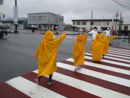 警察の方から、横断歩道を渡るときにはなるべく早くハンドサインを出して横断の意思を運転手に伝えることが大切だと教わりました。また、横断するときには確認をしっかりと行い、車が止まっていることをよく見る必要があることも教わりました。