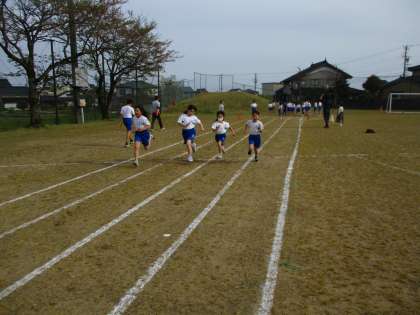 新しい週になり、子供たちは張り切ってグラウンドに出ました。勢いよくダッシュしています。