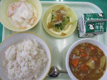 4月26日(火)今日の給食 公開日 2022/04/26 更新日 2022/04/26 池多っ子ゴーゴー 今日のメニューは、子供も大人も大好きなカレーライス(麦ご飯)、福神づけ、フルーツヨーグルト、牛乳でした。