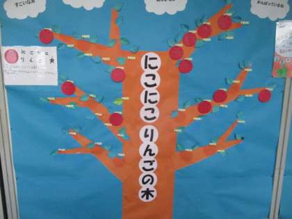 もう1本には、友達の素敵が書かれた「にこにこりんごの実」がなります。
