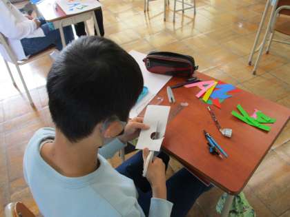 線対称、点対称の学習中です。イニシャルをつくって確かめています。