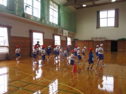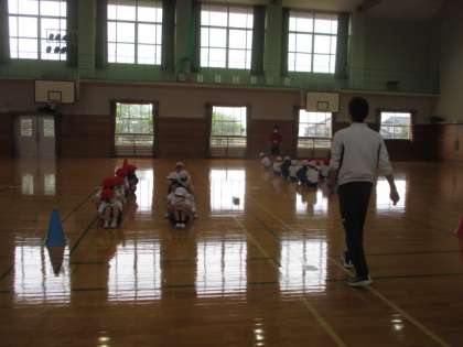 体育館でリレーの走順や流れについて確認しました。とても上手に、きびきびと動いています。グラウンドで競走するのがとても楽しみですね。