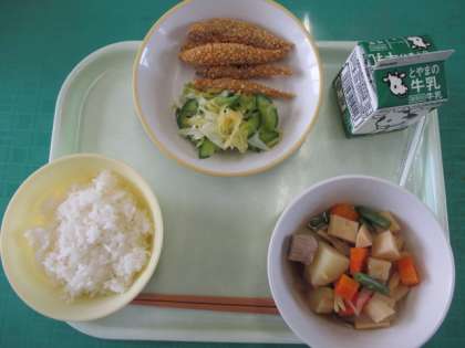 5月9日(月)今日の給食 公開日 2022/05/09 更新日 2022/05/09 池多っ子ゴーゴー 今日のメニューは、ご飯、きびなごのさくさく揚げ、あわせ合え、豚肉とじゃがいものうま煮、牛乳でした。