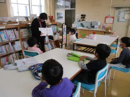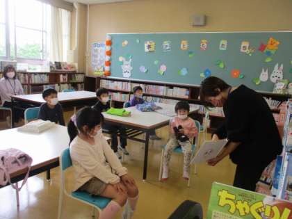 学校司書の先生の読み聞かせを夢中になって聞きました。ときどき思ったことや感じたことを出し合っていました。5人ともお話の世界にどっぷりと浸って、楽しむことができました。