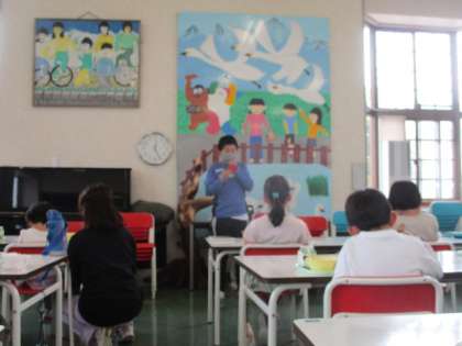 そして、給食の時間には、いつものように運営委員が友達の素敵を紹介しています。拍手がとても温かいです。りんごの実が少しずつ増えています。