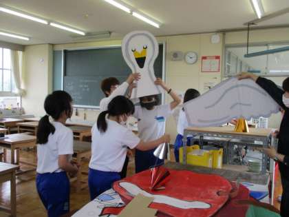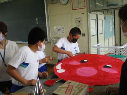 5,6年生が、応援優勝を願い、心を込めて製作しています。