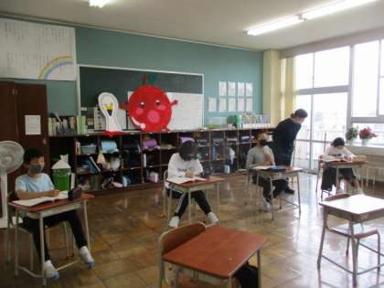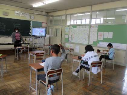 ALTの先生の問いかけにも随分慣れて、はっきりとした声で応答することができます。発音も上達していますね。また、書く活動にも熱心に取り組むなど、意欲的に学んでいます。