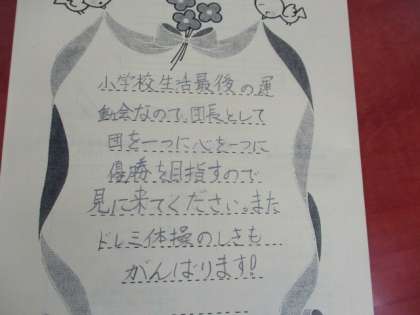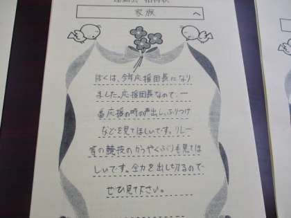 いよいよ21日(土)は運動会です。プログラムと一緒に、家族に向けて招待状を書きました。特に6年生にとっては、小学校生活最後の運動会となり、一層熱が入っています。思いあふれる招待状を読んでくださったご家族は、きっと運動会当日に大声援をくださることでしょう。