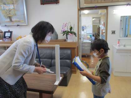 今日も先生方に自己紹介をしました。「昨日よりも上手に話せた」ととても嬉しそうでした。