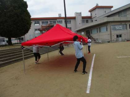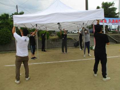 早朝から保護者の皆様には、運動会設営のご協力をいただいております。ありがとうございます。運動会のスタートが待たれます。