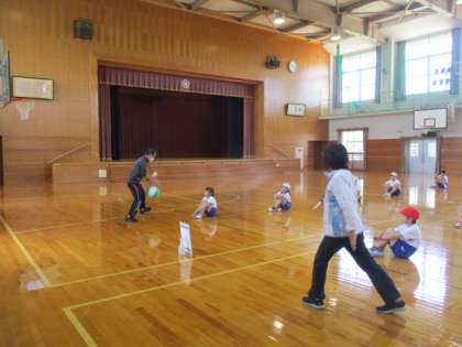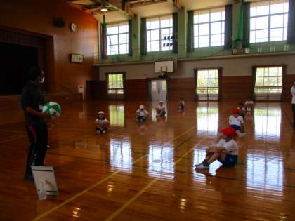 今日から新しい学習「キャッチビーチバレーボール」が始まりました。子供たちは、先生の話をよく聞いて、楽しい学習にしようと真剣です。