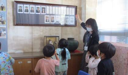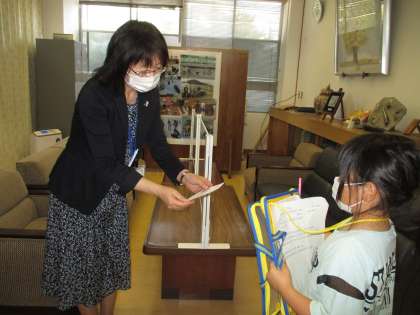 校長先生に自己紹介をしに行きました。校長室のとなりにある会議室にも入らせていただき、大喜びでした。