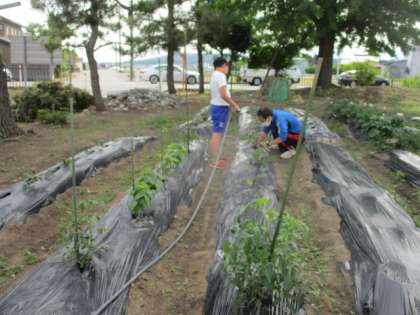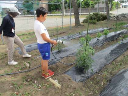 朝トレを終えて、すぐに自分の苗の成長を確認し、水をたっぷりやります。このところの暑さで苗がぐんと成長していることが分かります。収穫が待ち遠しいですね。