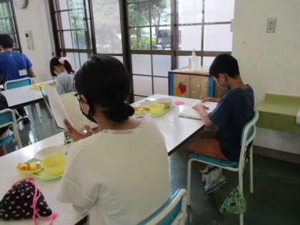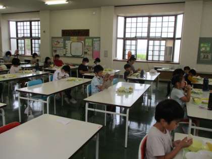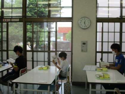 静かなBGMが流れるランチルームでは、給食を食べ終えた人から読書タイムに突入します。今日の一冊を広げ、読書に没頭する姿があちらこちらで見られます。子供と一緒に、担任の先生も同じように読んでいます。一人一人にとって、至福のひとときになっているようです。