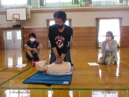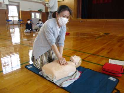 意識のないときは、迷わずAED、胸骨圧迫を行うことを教えていただきました。講師の先生には丁寧にご指導いただいたおかげで、理解を深めることができました。熱心に参加いただいた保護者の皆様、ありがとうございました。