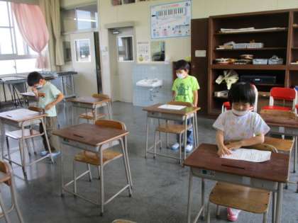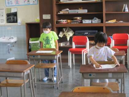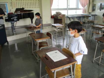 とても素敵な音楽が階段下まできこえてきました。担任の先生のピアノ伴奏に合わせて、気持ちよさそうに歌っています。