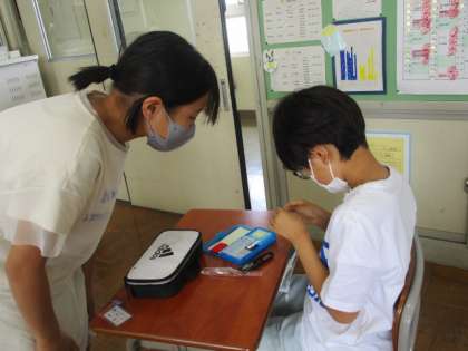 5年生は、初めての裁縫にチャレンジしました。困っている友達にそっと寄り添い、玉結びの仕方を丁寧に教える6年生の姿が素敵でした。
