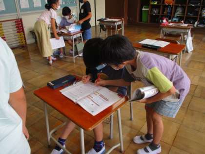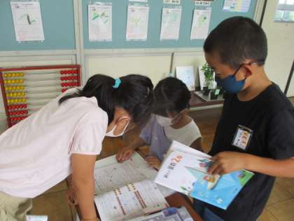 学習したことがきちんとできているか、友達と確認中です。