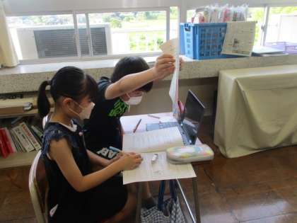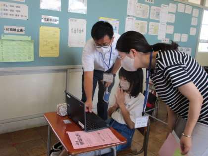 お互いの声にしっかりと耳を傾けました。「カードに書けたら言ってね」「大丈夫?」などと声をかけ合う場面も見られました。Meet学習は和やかに進み、予定の事前学習を終えることができました。
