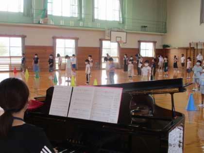 わくわくタイムに、体の力を抜いたよい姿勢や口の開け方について学びました。2曲をみんなで聴き、歌ってみました。どちらも素敵な歌詞とメロディーです。