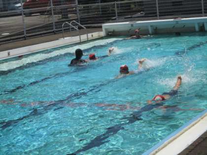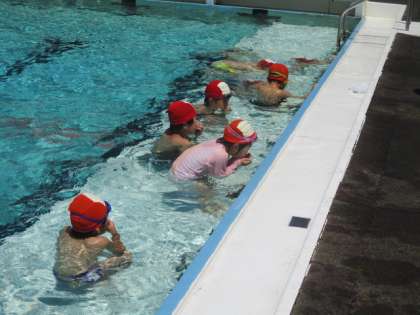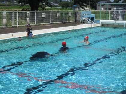 外はとても暑いので、こまめにプールから上がり、給水タイムをとりながら学習を進めています。無駄な私語はありません。感心です。
