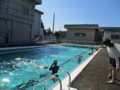 1限目、距離をとりながらの水泳学習です。さすが高学年、仲間の泳ぎ方をよく見て、取り組んでいます。昨年度よりもぐんと泳力がついた子供もいます。今年はどれくらい伸びるでしょうか。