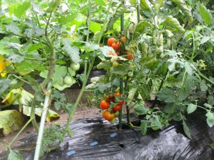 雨に打たれて、収穫間近の野菜たちはうれしそうです。