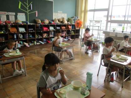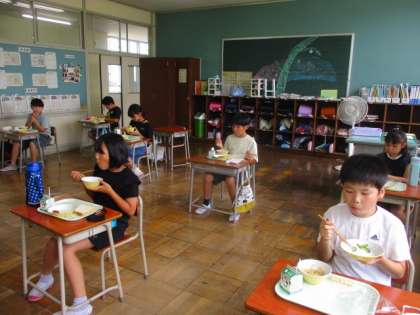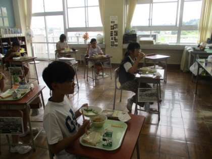 どの教室でも、子供たちがおいしそうに給食を食べていました。
