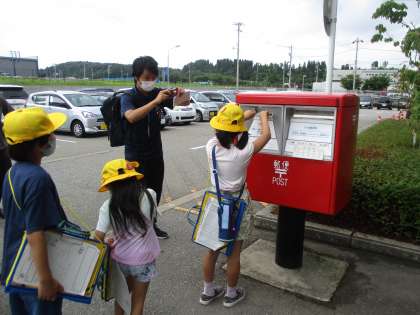 帰りには、それぞれが書いたはがきをポストに投函しました。きっと届いたはがきに相手の方は大喜びされることでしょう。