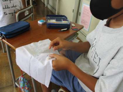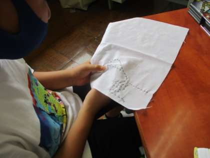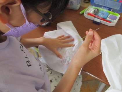 一針一針、丁寧に縫っています。そして、何度も見えてきた絵柄を確かめています。