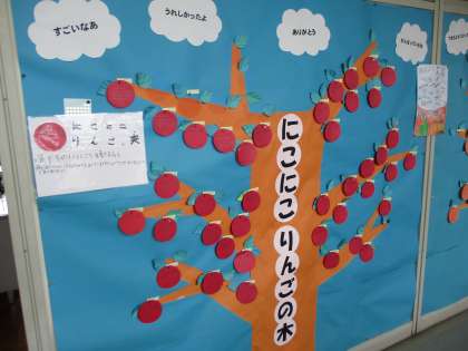 1学期もあと2日。りんごの実がいっぱいなっています。