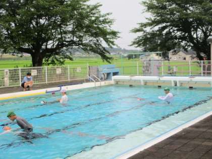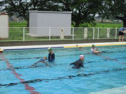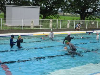 着衣泳を行っています。こつをつかみ、力を抜いて静かに浮こうとしていました。