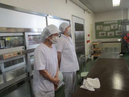 最後に、毎日栄養たっぷりのおいしい給食をつくってくださっている調理員さんに、全校児童で感謝の気持ちを伝えました。