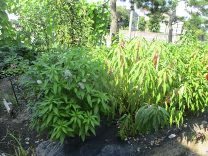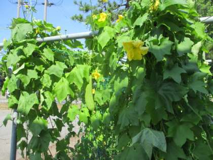 ヘチマもホウセンカもよく育ち、花が咲きほこっています。