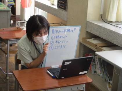 夏休み中の出来事を一人一人がお話しています。拍手とともに、「よかったね」「楽しかったね」などの声が聞こえてきました。