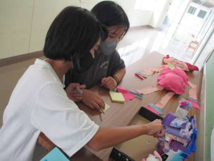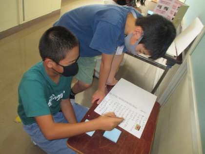 夏休みの自由研究を展示しています。下級生の作品の「いいね!」を見付け、それを下級生に伝えるために、コメントの書き方を工夫しました。作品のよさを短い文で表現することをがんばりました。