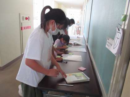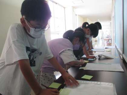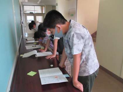 夏休みの自由研究を鑑賞しました。それぞれの作品から「いいね!」を見つけています。どんなところがいいと思ったのかを、理由を加えながらコメントを書きました。まずは、じっくりと作品を読むことから始める子供たちです。