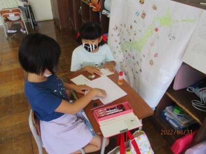 夏休みに行った「一人一研究」の友達の作品を見合いました。友達の作品を見て新しい発見がありました。
