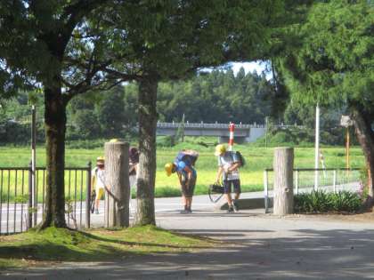 強い日差しの中、子供たちは登校してきました。道路を横断する際、運転手さんはしっかりと待ってくださいます。その運転手さんに対して、子供たちは振り返って挨拶しているのです。いつ見ても素敵な光景です。