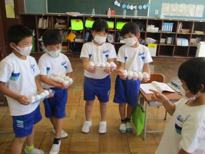 10より大きい数について、卵を使って考えました。10のまとまりを意識して、数えています。