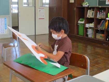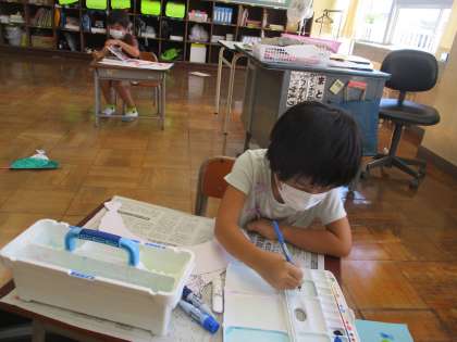 自分の乗りたい動物の絵を描いています。作りたい色になるまで何度も絵の具の色を作り直していました。