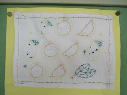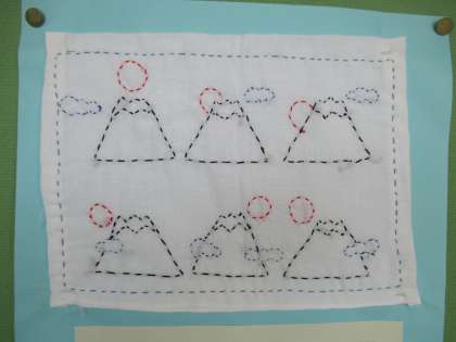以前から取り組んでいた「刺し子」が仕上がりました。オリジナルの模様、色使いで、個性あふれる作品になりました。どの作品にも、一人一人の思いがつまっています。