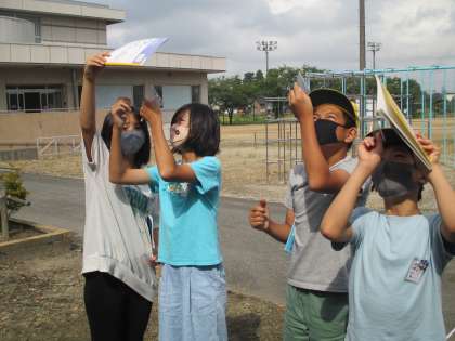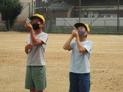 縮図を利用して、校舎や体育館、バックネット、ドングリの木の高さを求めてみました。直接測ることができない長さの求め方を考えることができました。