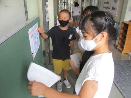 朝登校して身支度をすませたら、「先生クイズ」に挑戦です。どれくらい合っていたかな?答え合わせの時間が楽しいですね!