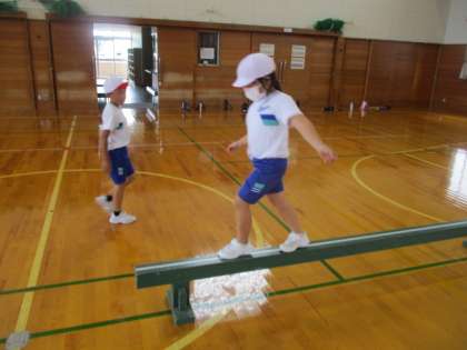 今日の体育の学習では、前半は器具を使ったサーキットで運動に慣れ親しみました。後半は鉄棒あそびで、新しいあそびを行いました。
