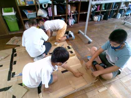 工作係は「段ボールホッケー」作りに夢中でした。完成が楽しみです。