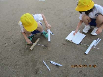 現在理科では「太陽の光を調べよう」の学習をしています。先日は地面の温度が日なたと日かげでどれくらい違うのかを調べました。午前10時と正午の2回計測し、温度の変化から日光のはたらきについて考えていきます。