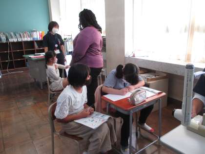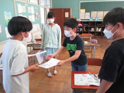 今日の外国語活動では、”What do you want?”” I want〜”の練習をしました。友達とお互いに欲しい文房具を聞き合い、イラストを描き合って最後にプレゼントし合いました。