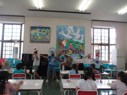 今日の給食の時間に、池多っ子に栄養の大切さを教えてくれる『栄養レンジャー』が登場しました。今日は体を作るもとになるタンパク質の大切さを伝える”レッドタンパック”が主役でした。給食委員会では、これからも栄養レンジャーに変身して登場してくれるようです。楽しみですね。